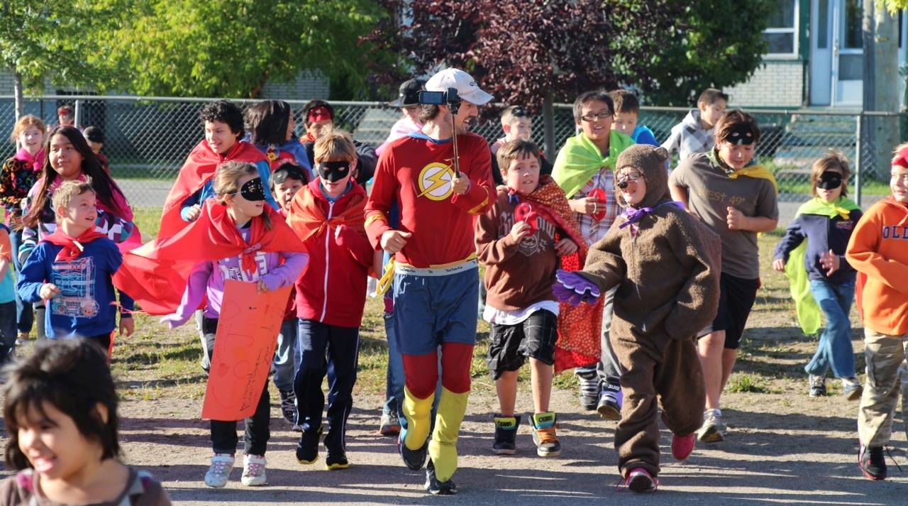 Dressed as comic book superhero The Flash, Jamie slowly began whipping up a frenzy with each town he went through. He began running with 30kg in his back, which he later swapped for a pram to hold his kit. Running the equivalent of 200 marathons he was overwhelmed by the support of local people. “I kept picking up injuries but I knew I didn’t have time to stop, the pain just started to disappear” Jamie knew that the fundraising all comes in at the end of this sort of thing, so he just kept running. He stopped at schools and met so many people that the thought of letting them down was unbearable. “Sometimes I was running crying my eyes out, but if you took me back to that point again I would always carry on”. People found out his shoe size and would turn up on the side of the street with trainers for him.